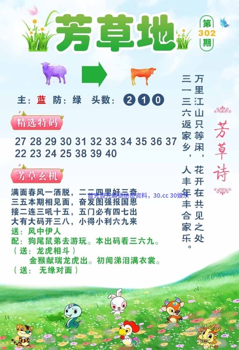 307期:芳草地网 【必杀一肖】 已公开